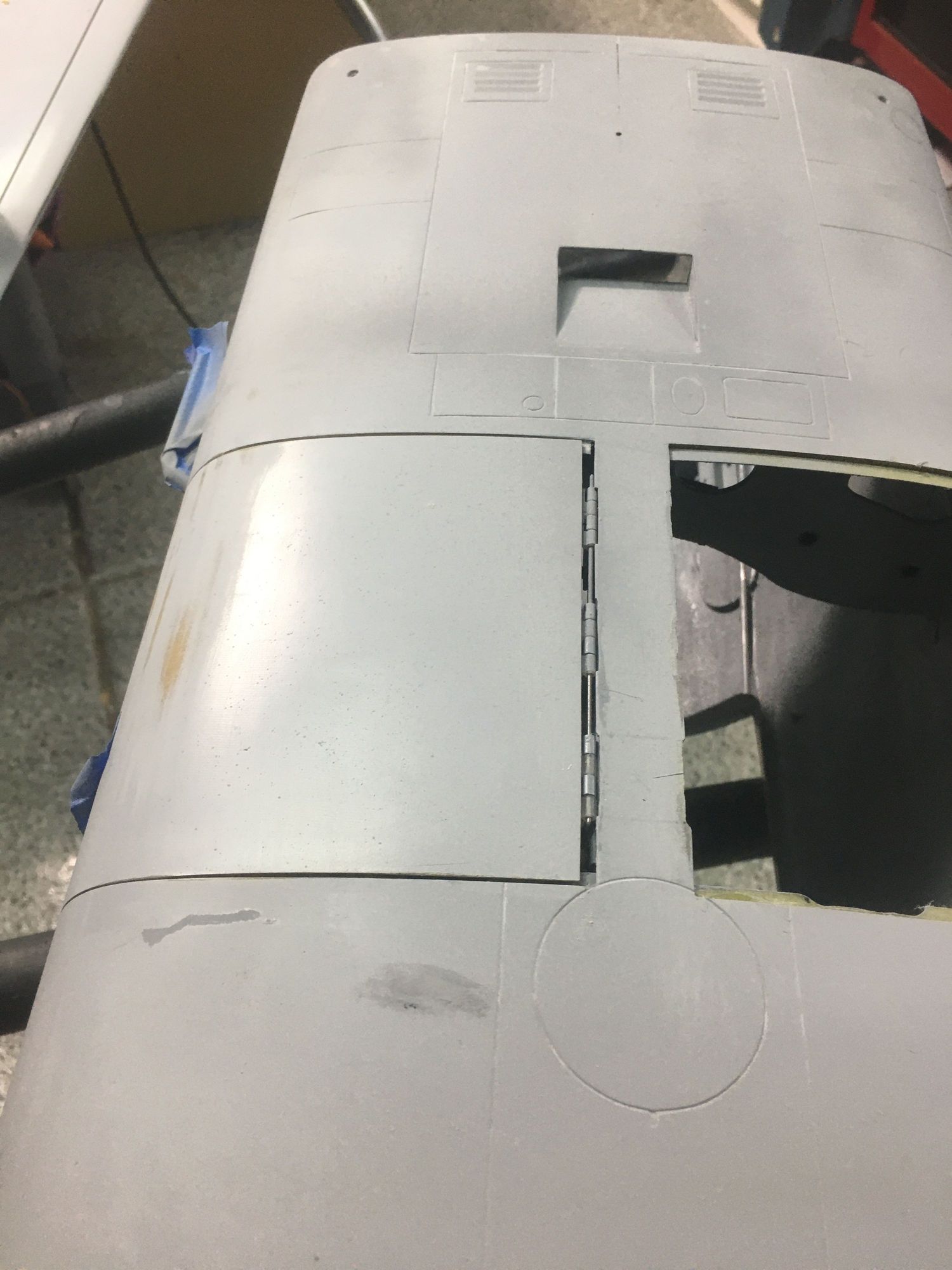 Main gear doors. Gap is required with the Dubro hinges to allow door to open 90. I’m tearing this out for piano hinges currently